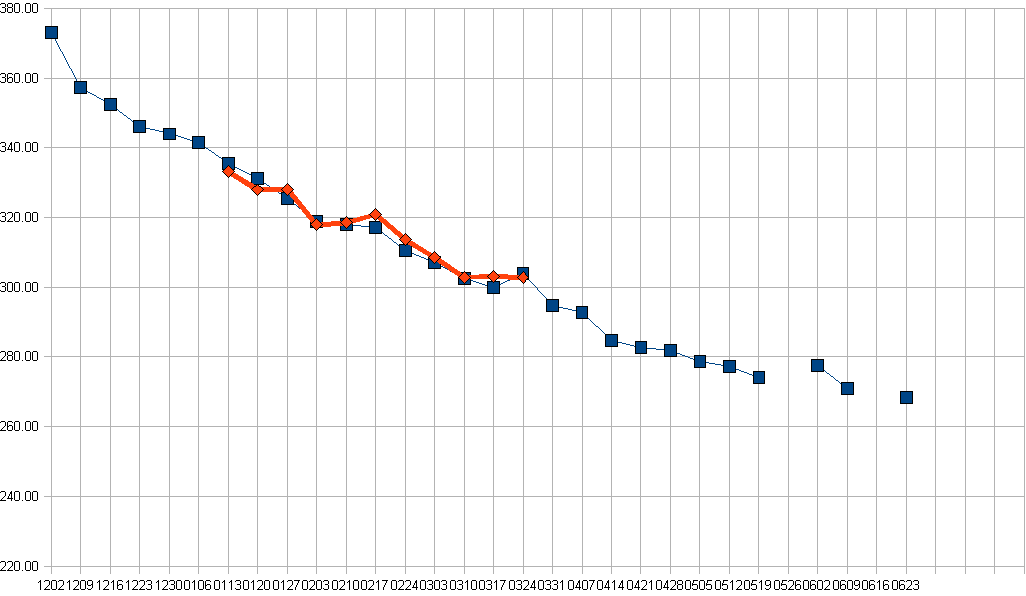 Not that much to note. I’m back on track and feeling good about it. Soon I’ll be switching to Thursdays instead of Tuesdays for the weigh-in, so that will glitch the weekly numbers a little.