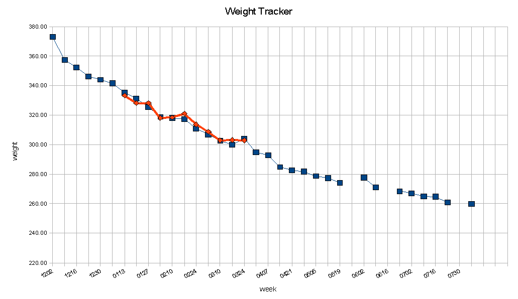 OK, I should have posted this nearly a week ago.  But it’s been a whirlwind and I just couldn’t get to it.  Surprisingly still on track, despite my trip to California.  I had thought I’d gain some, since my exercise was irregular and my attention to the plan spotty at best.  But in fact I continued a weight loss, albeit a small one.  We’ll see if the weeklong roadtrip to DE and MD had any different effect…